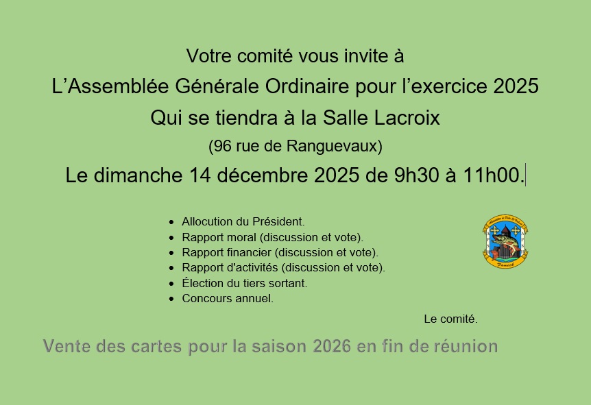 Mise à jour le : lundi 1er décembre 2025 ==> A voir dans "la page des adhérents", une belle canne à Feeder à vendre - Assemblée Générale Ordinaire